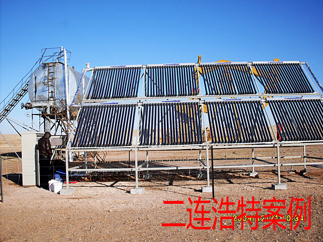 二、 YGYM 單井罐太陽能加熱 產(chǎn)品說明:本設(shè)備采用國內(nèi)外_的“_導(dǎo)真空極熱管”的太陽能集熱器成套設(shè)備,以閉路循環(huán)的形式,載熱 工 質(zhì)通過交換器,把熱量源源不斷地傳遞給原油,使原油溫度上升達(dá)到目的。由于綠色能源,節(jié)電率 6 0%以上,同時滿足_時間拉運原油所需的油溫45℃左右的恒定溫度 , 確保拉油順利。